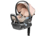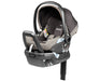 The dual-stage insert system provides proper head support and a snug seating position for newborns.