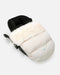 The PlushPOD boasts an anti-slip, removable back panel—eliminating extra fabric between baby’s back and the safety harness—a convertible hood with an oversized collar, plus a double lined hood that slips over the top of the stroller to keep the footmuff from slipping while on your winter walks.