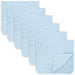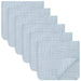 This pack contains 6x muslin burp cloths, measuring 20" x 10" inches each. The cloths are 100% Cotton and have 6 layers of extra absorbent, soft material.